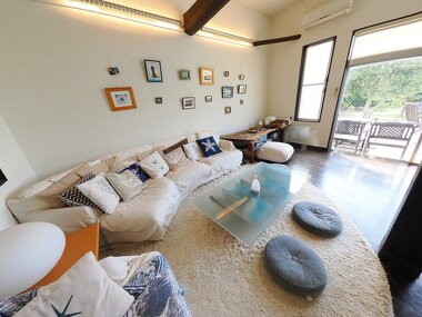 アフターダイブは広いリビングや庭でのんびりおくつろぎください。