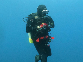 体を濡らさず快適なダイビングが楽しめるドライスーツ。