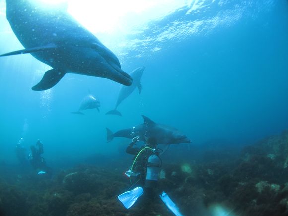 ※写真はすべて以前大島にいた4頭のミナミハンドウイルカです。(2012年・平井撮影)