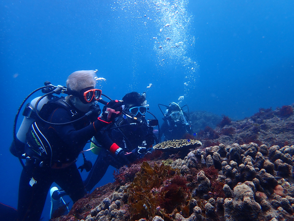 水深30m付近まで行きましたが25℃、透明度も15mほどに回復しています!