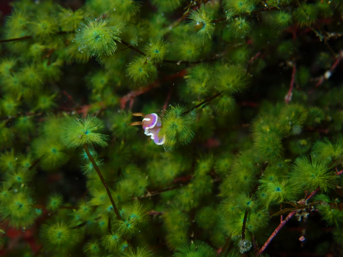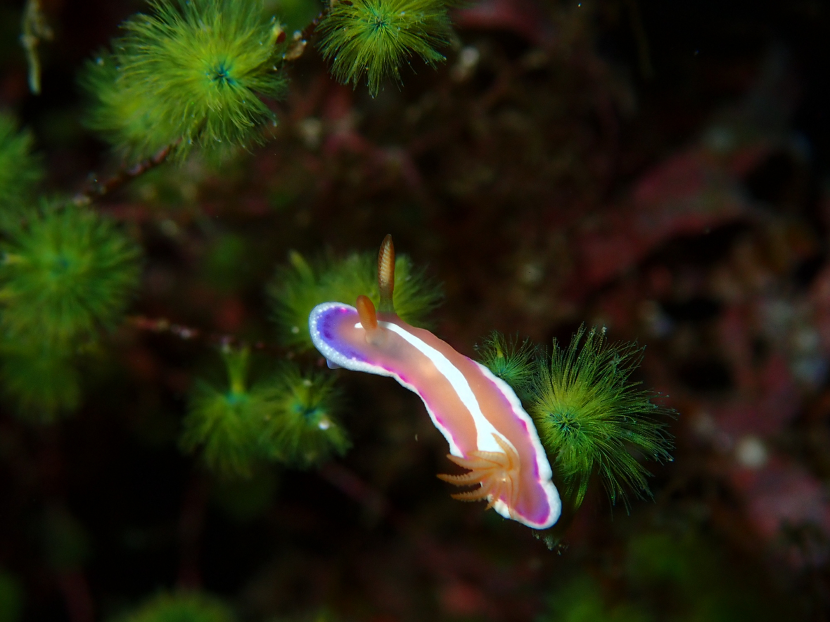 壁沿いのケヤリを探すと、運よくウミウシが乗っていることも。