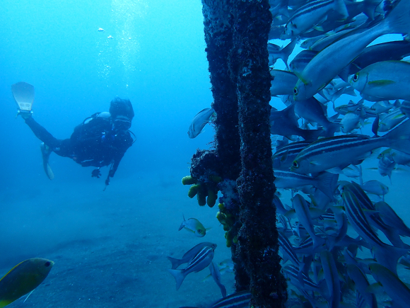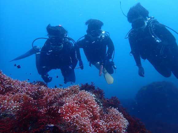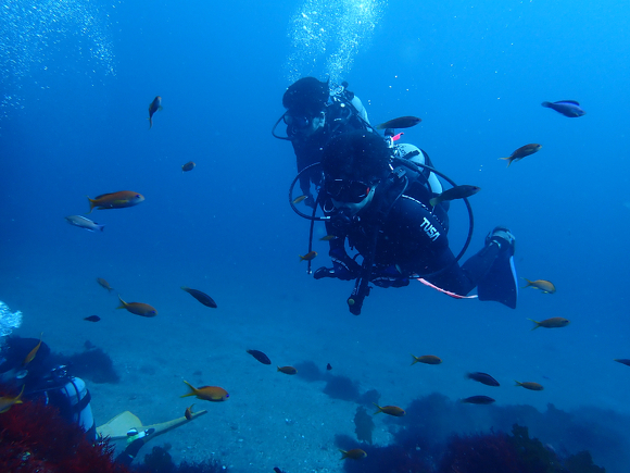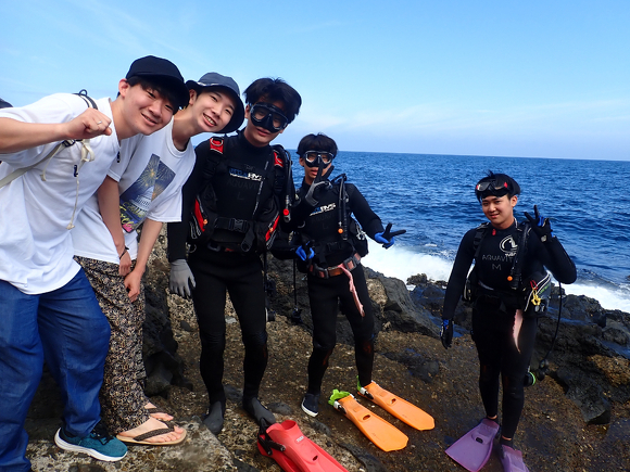 2022年09月05日(月) AQUAVIT海情報 リフレッシュダイブ 日曜日、月曜日はピチピチの?大学生グループをお迎えして、秋の浜でリフレッシュダイブ&ファンダイブ。 ちなみに1名は田中の甥っ子です! コロナのせいで2年ぶりの再会、2年ぶりのダイビング、いかがでしたか?! 若者といえば、夕飯はもちろんBBQ!? お肉にサンマ、地物野菜、そして5合のご飯がきれいに無くなりました!笑 アリィとも遊んでくれてありがとうございました! また来年の夏休みに待ってますよ! ※※※※※※※※ 秋の浜 水温26~8℃ 透明度15m 台風の影響により秋の浜以外はクローズ